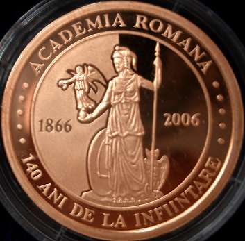 Imaginile monedelor omagiale de 1 leu și 5 lei - 140 de ani de la înființarea Academiei Române - de deasupra sînt prezente pe site prin deosebita amabilitate a domnului Radu Lissner.